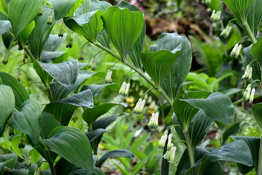Native herbaceous perennial, known for tall stature, arching stems, and bell-shaped, greenish-white flowers that dangle from leaf axils